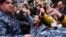 Armenian security forces in Yerevan detained dozens of protesters who gathered on the city's central Republic Square on April 22. The afternoon protest was a continuation of a dispersed march. (RFE/RL's Armenian Service)
